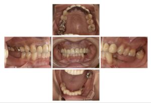本来ならば左上大臼歯を削って面を揃えたかったのですが、生活歯ということもありそのまま補綴しています。