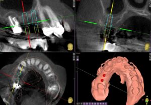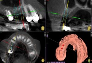 コンピュータガイドでしっかり位置決めを行います。やや上顎洞にかかるのでソケットリフトという手術を併用しました