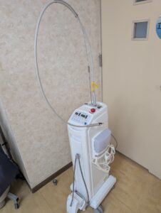 当院では、身体への負担を抑えた先進的な治療を行うために炭酸ガスレーザーを導入しています。炭酸ガスレーザーは水分に反応しやすい特性を持ち、歯ぐきなどの軟組織をやさしく処置できるのが特徴です。出血が少なく、痛みや腫れを軽減できるため、患者様のストレスを抑えた治療が可能です。また、殺菌効果にも優れており、歯周病治療や口内炎の改善、抜歯後の治癒促進など幅広い症例に対応しています。従来の治療に比べて回復も早く、安心して受けていただけます。患者様一人ひとりの状態に合わせ、安全で質の高い医療の提供に努めております。